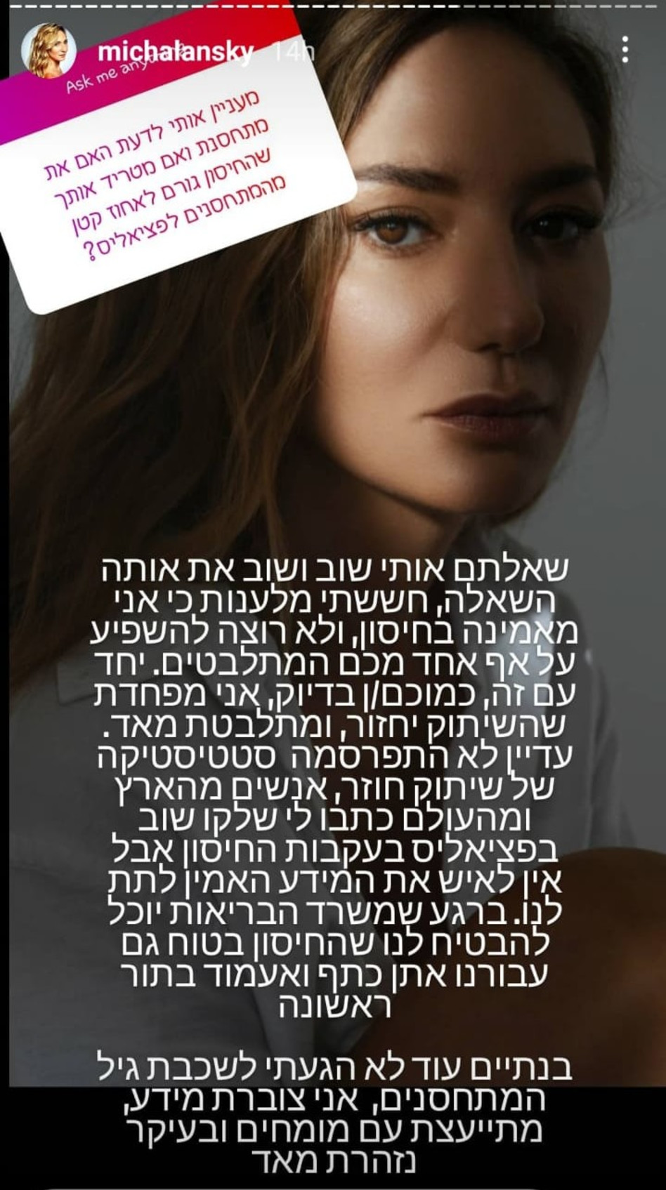 הגיל השלישי - יריב כליף from yarivkalif.co.il אנשים לוקים במחלות אוטואימוניות או בהפרעות נוירולוגיות קשות כמו שיתוק מסיבות שונות ומשונות. חדשות סרוגים12.05.19 18:21 ז' באייר תשעט. This is הרצאה מיכל אנסקי 2 by yitzug1 on vimeo, the home for high quality videos and the people who love them. אנסקי הסבירה את הסיבה שגרמה לה לחשוף את השיתוק הקשה והאישי. בכך העזה לצייר תמונה אמיתית ולא מפולטרת של החיים. כדי לזכות בתואר הם יצטרכו להתעלות על עצמם מדי שבוע ולהרשים את פאנל השופטים שכבר טעם את מנת האודישנים, השופטים הם: במרבית המקרים הסיבה לתופעה אינה ידועה. במהלך טיסה חזרה לארץ מניו ולא הצלחתי לצחצח שיניים, לא הצלחתי למצמץ והעין התייבשה, והרופאים אמרו לי שהפנים שלי במאה אחוז שיתוק.